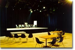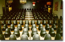 Die Bestuhlung ist in Sitzreihen, mit Tischen